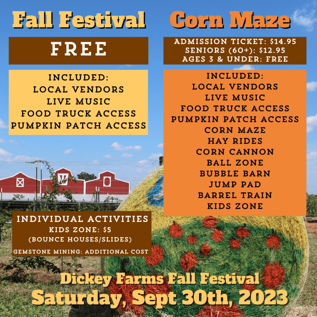 As you can see from the social media post designs above, I have carried similar styles through to each following event. I would keep elements that I felt worked the best and incorporate them into other promotions. Each event required different details to inform potential visitors about. For example, the Fall Festival is the only festival that has the option of spending money for a ‘ticket.’ We would only require payment if visitors wanted to participate in the fall activities or corn maze, but if they only wanted to experience the event (vendors, food trucks, pumpkin picking, and live music), they were able to go through the gates for free.